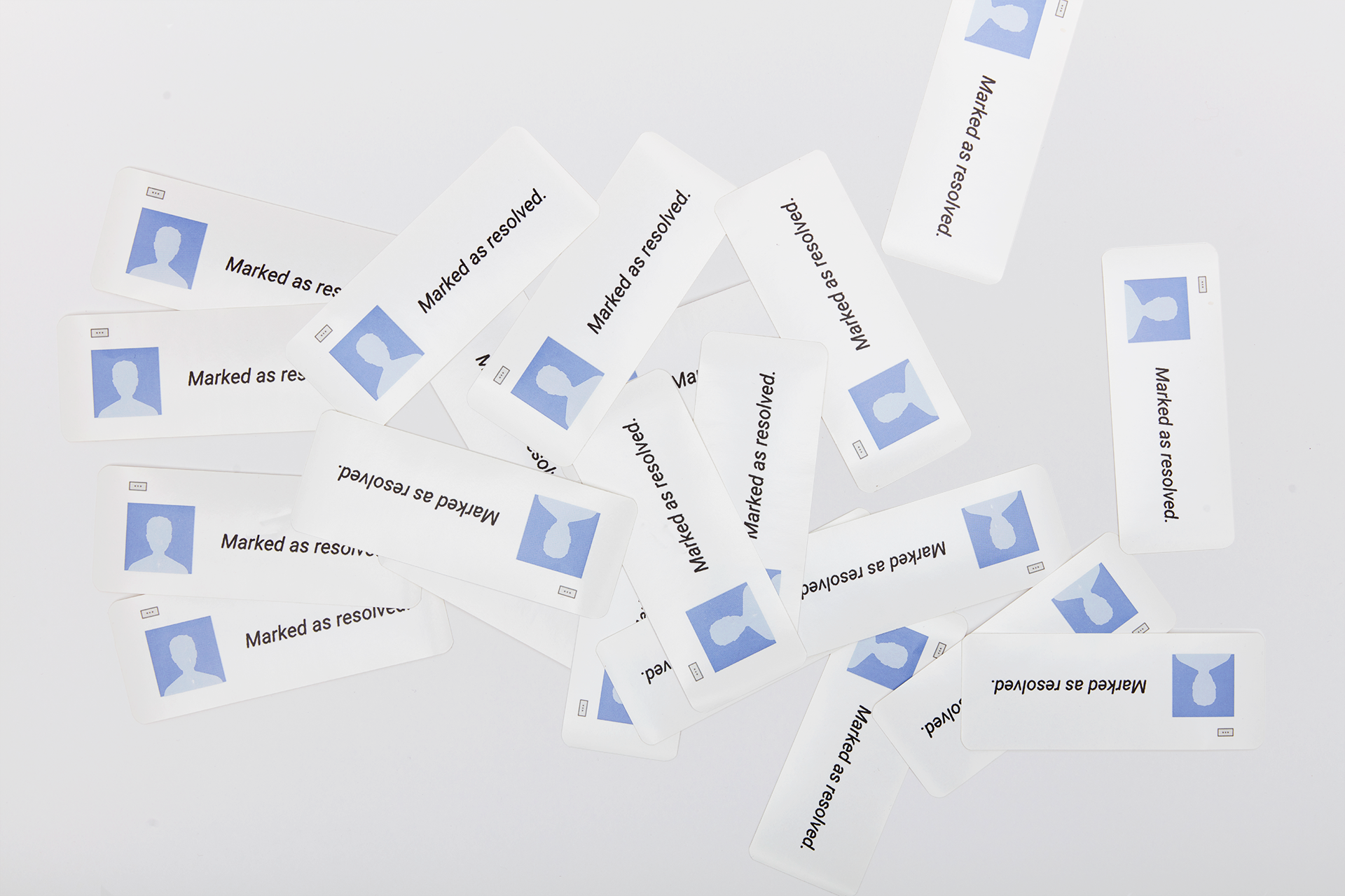 A project turning the classic "Marked As Resolved" Google notification into a physical sticker to resolve comments in real life.